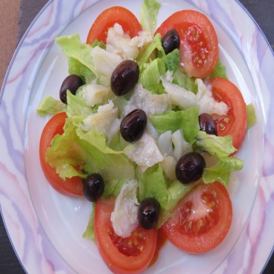 Lechuga variada, Huevo duro, Tomate, Cebolla, Esparragos blancos, Atún, Remolacha y Zanahoria